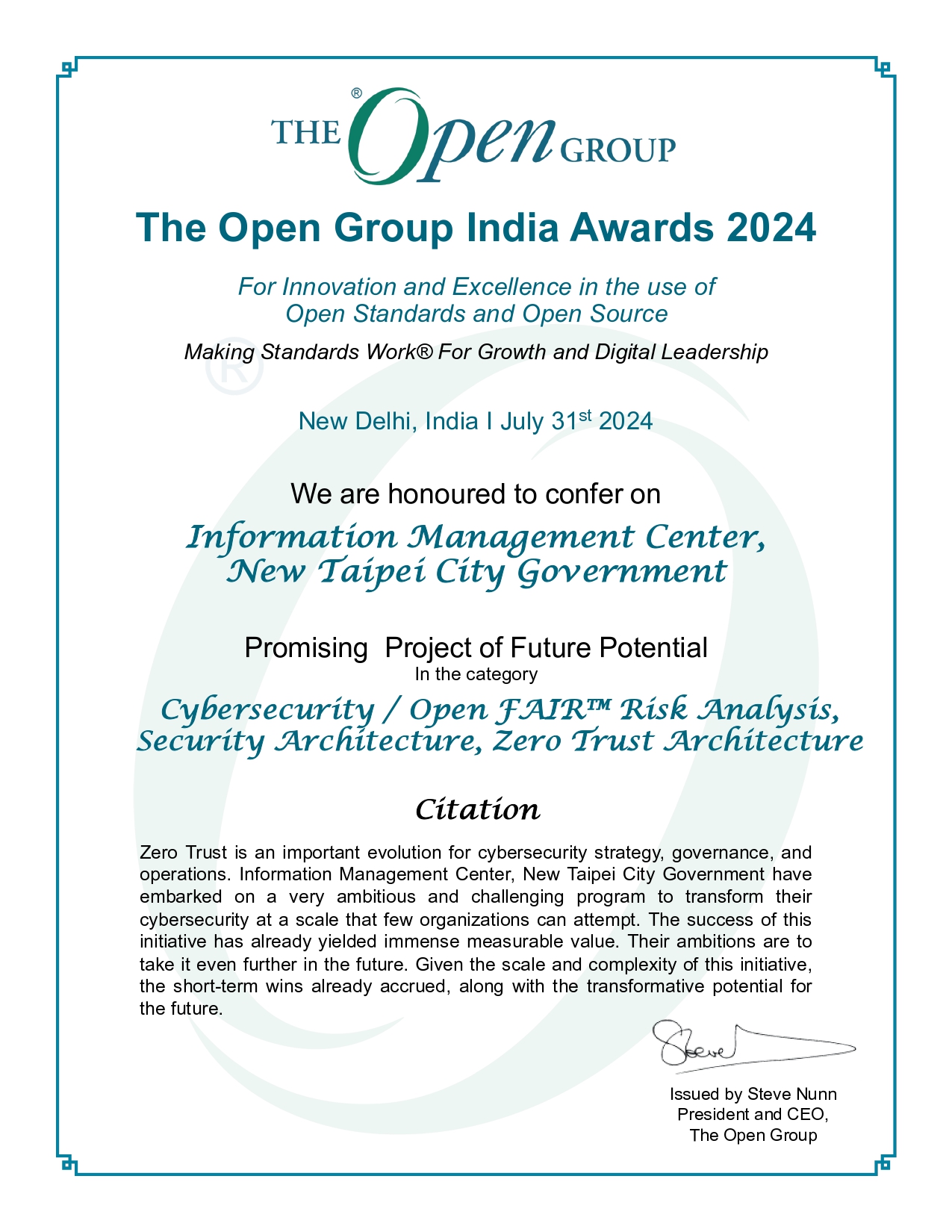 2024 The Open Group India Awards最具未來潛力專案 -「零信任資安聯防系統」